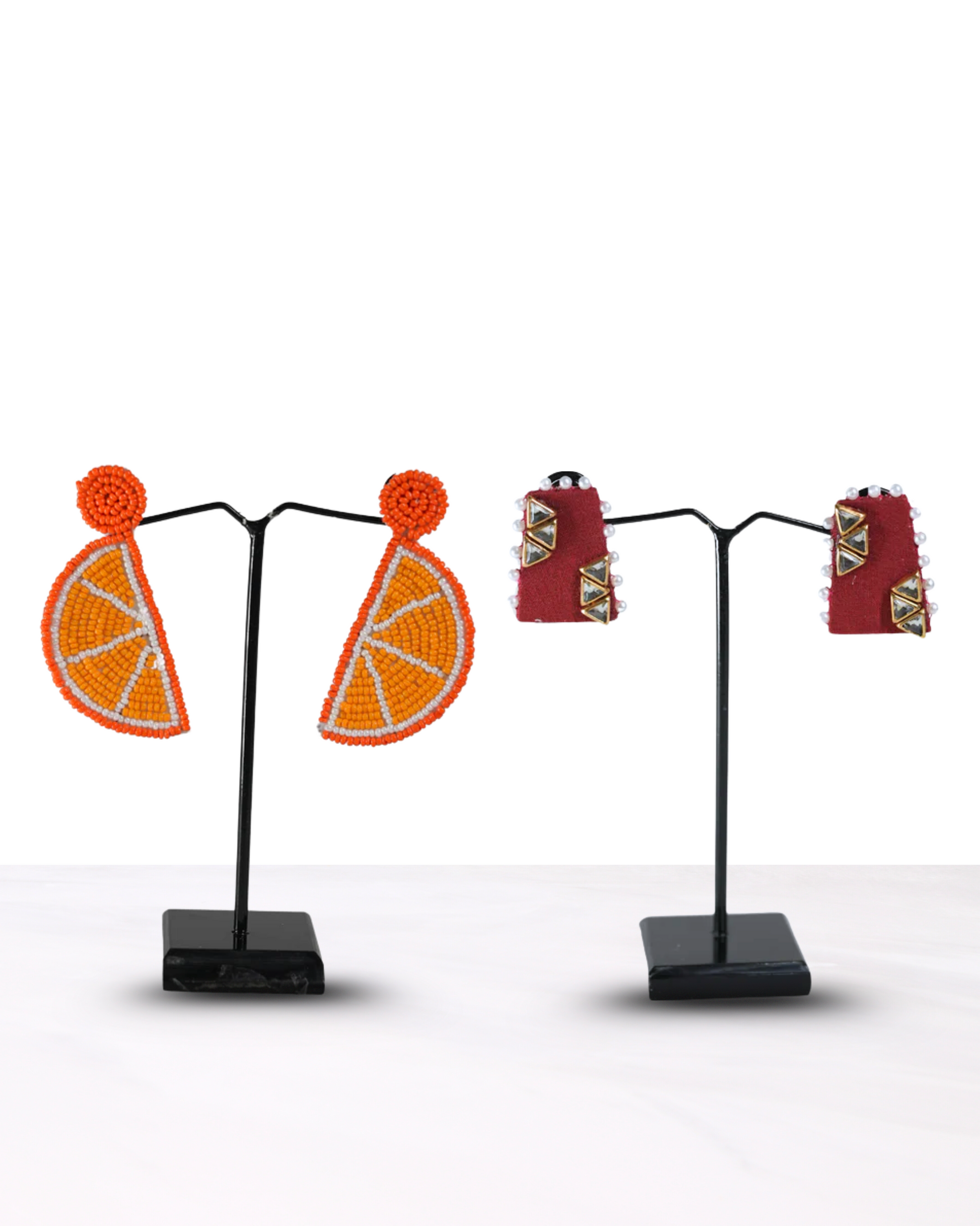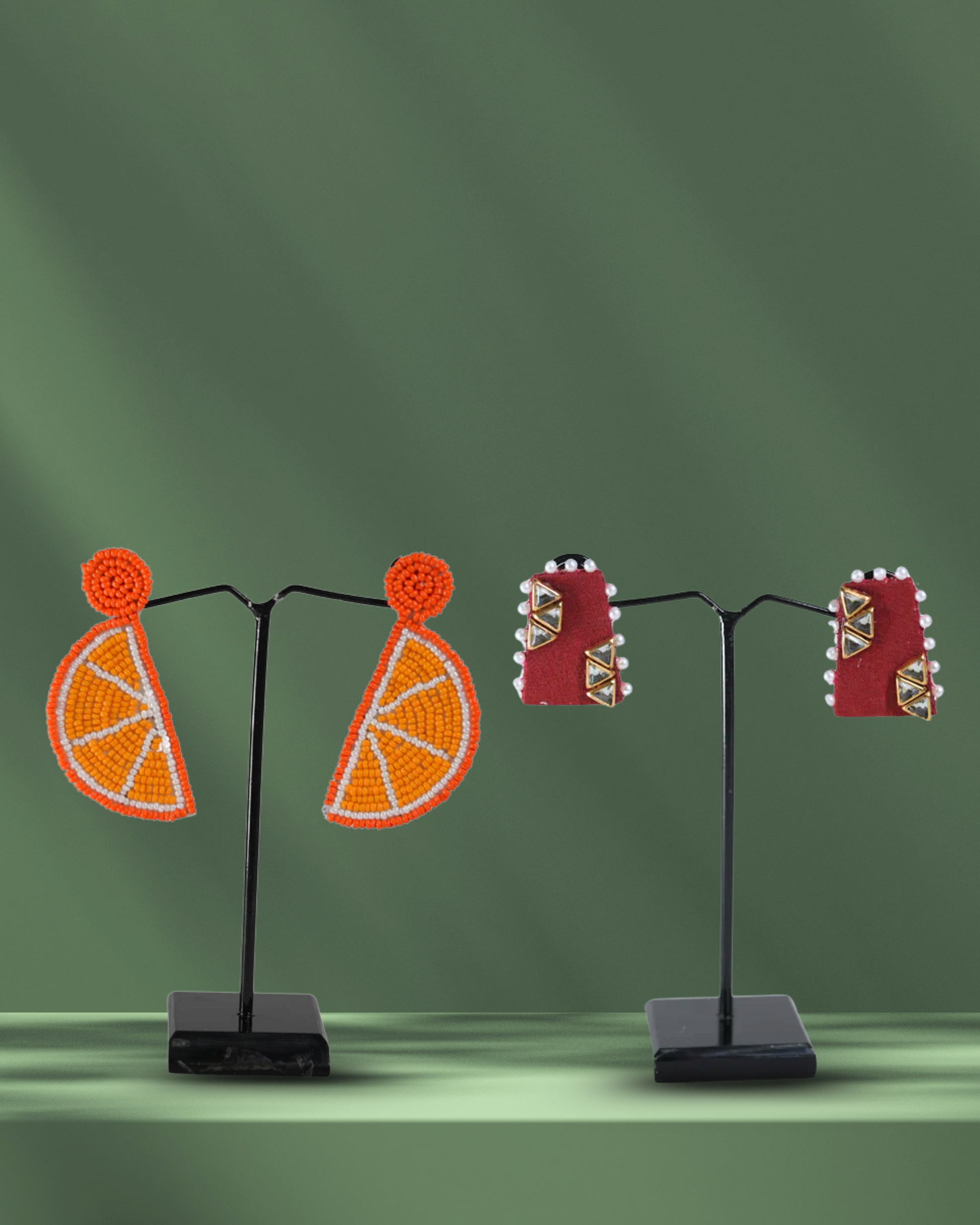Desisnitch Handmade Earrings Combo β Citrus Beads & Pearl Gemstone Edition (Set of 2 Pairs)