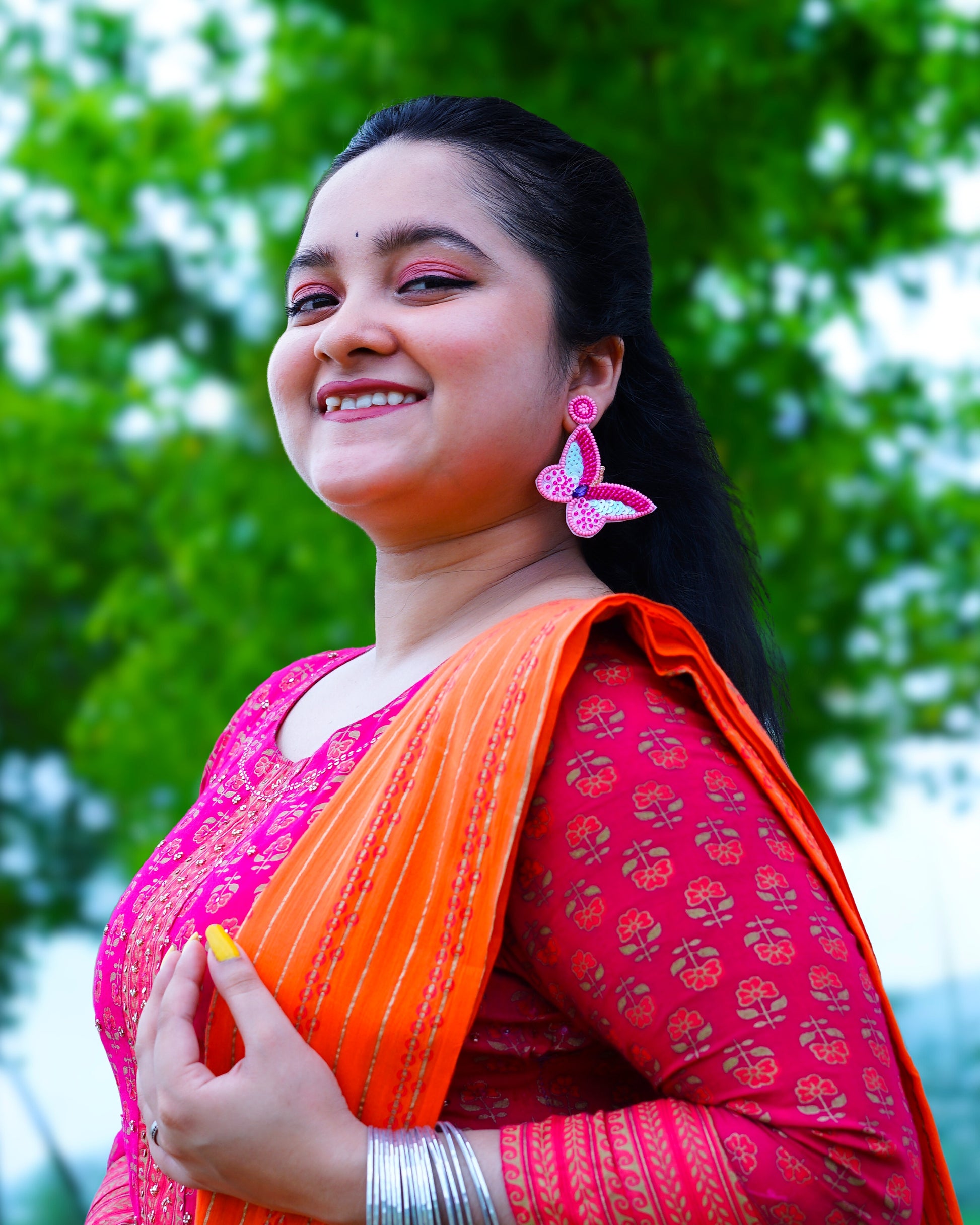 A whimsical blend of charm and craftsmanship. These beautifully hand-beaded earrings in shades of pink, orange, and yellow are designed to lift your mood and brighten your outfit, no matter the season.