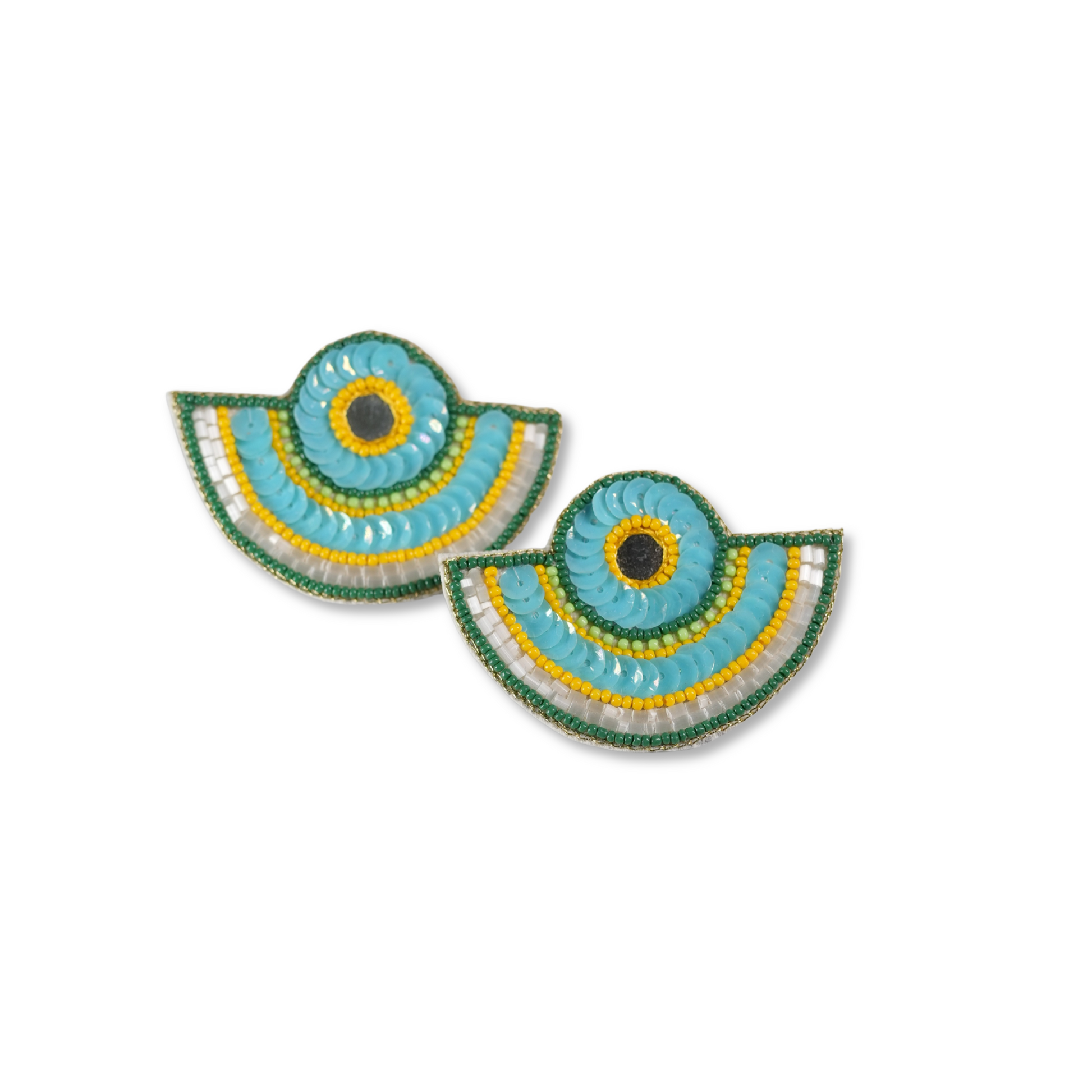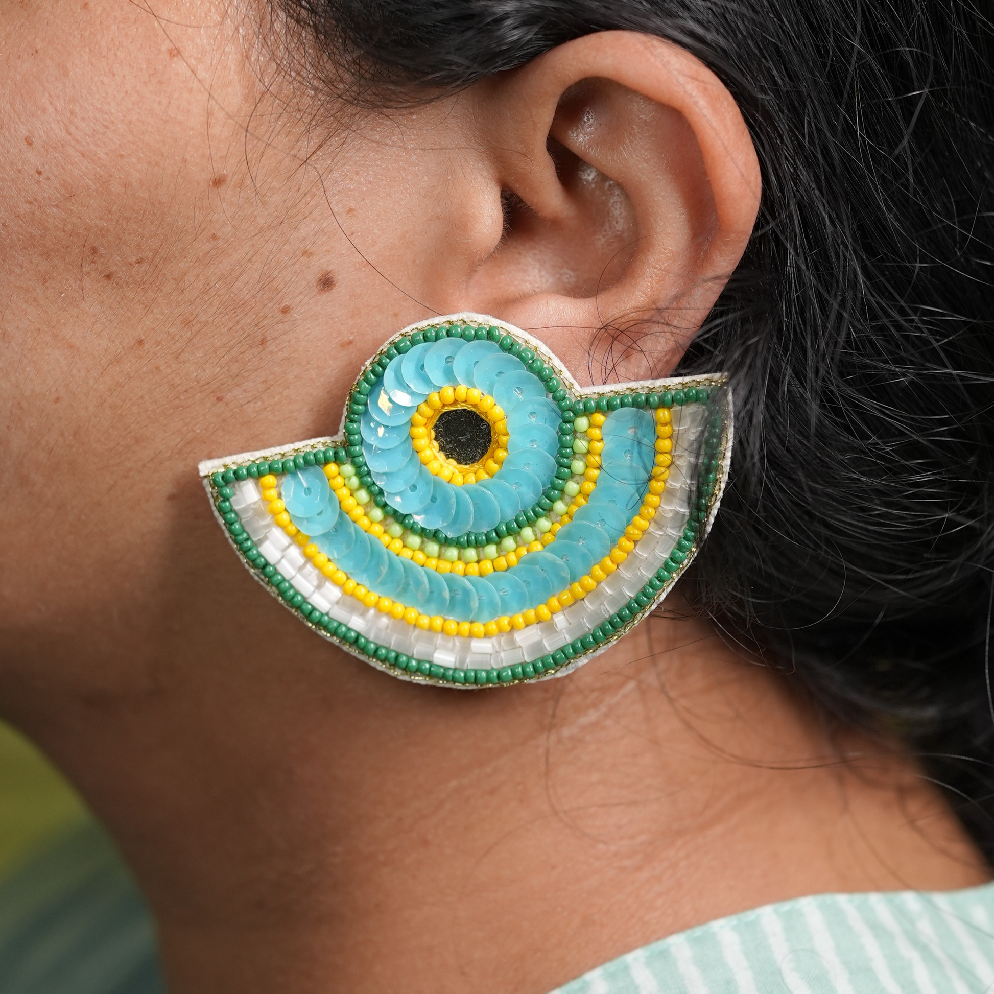 Desisnitch Handmade Half Moon Beaded Fan Earrings