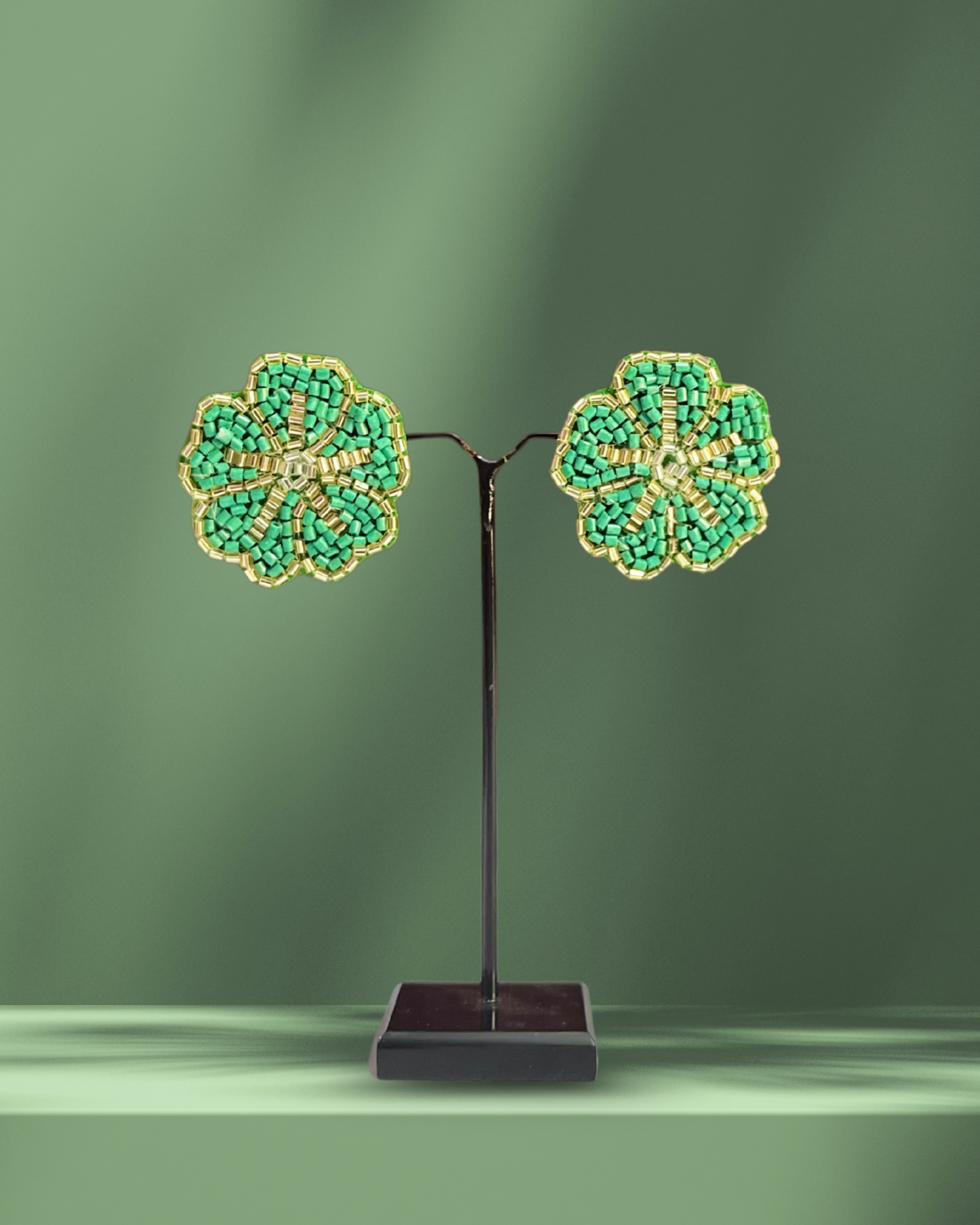 Elevate your everyday or festive look with our Emerald Bloom Beaded Stud Earrings — a beautiful fusion of traditional charm and modern craftsmanship. Designed in a delicate floral pattern and meticulously hand-beaded in rich emerald green, these earrings bring effortless elegance to any ensemble.
